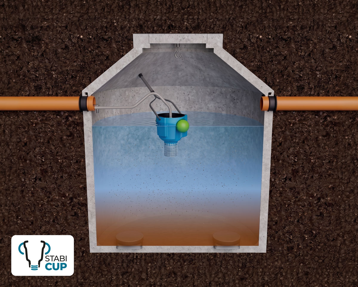 Das neue STABI-CUP Klärsystem arbeitet nach dem SSB-M Verfahren in einem Klärbehälter ohne Trennwand und eignet sich damit perfekt zur Nachrüstung von Abwassersammelgruben. Der Techniksatz beinhaltet Verdichter, Tellerbelüfter und die K-Pilot Steuerung, sowie den CUP-Behälter mit Führungseinheit und Niveauschalter. In diesem schwimmenden Behälter integriert, sorgt die neue AQUATO® Mini 12V Pumpe mit druckgesteuertem Schutzventil für den Klarwasserabzug. Die Probeentnahme erfolgt mittels Schöpfbecher direkt aus dem CUP.